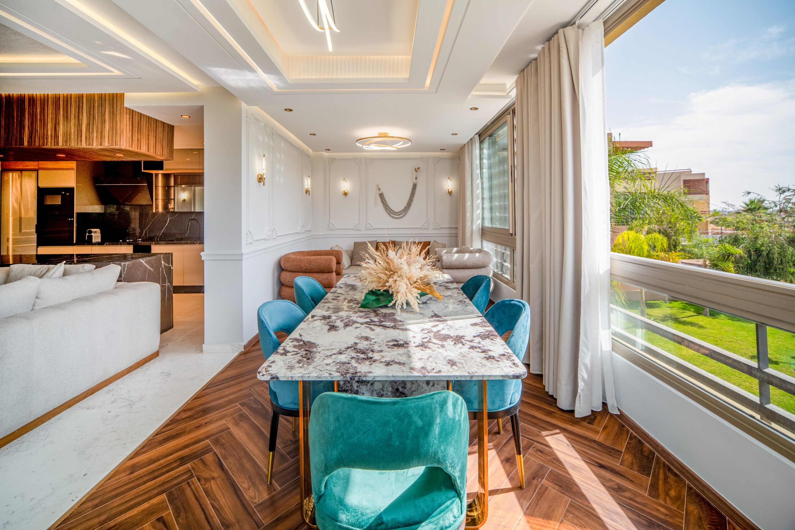 Offrez-vous un séjour d’exception dans ce superbe appartement de standing de 127 m², idéalement situé au cœur de Marrakech. Spacieux, élégant et parfaitement équipé, il vous garantit confort et sérénité tout au long de votre séjour.