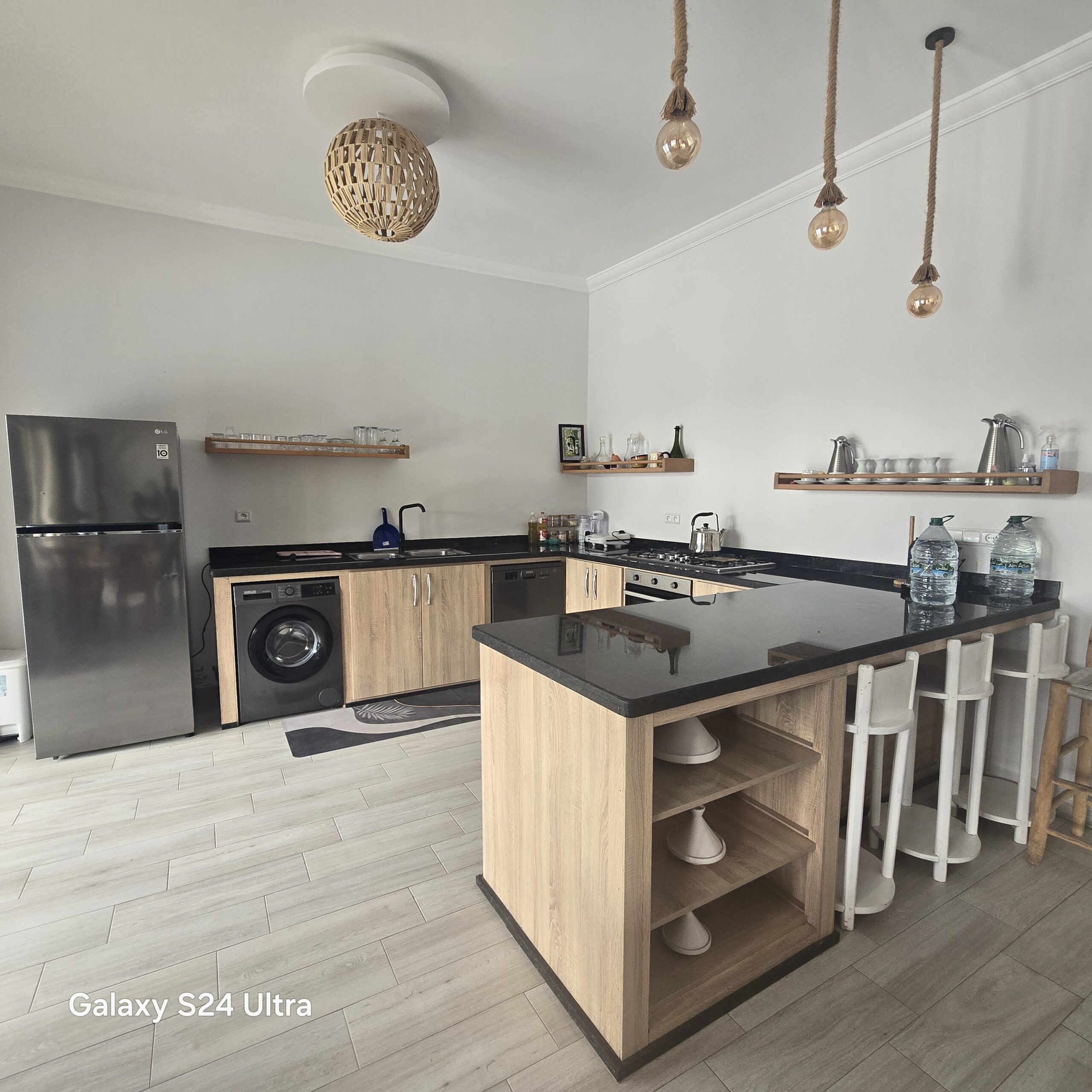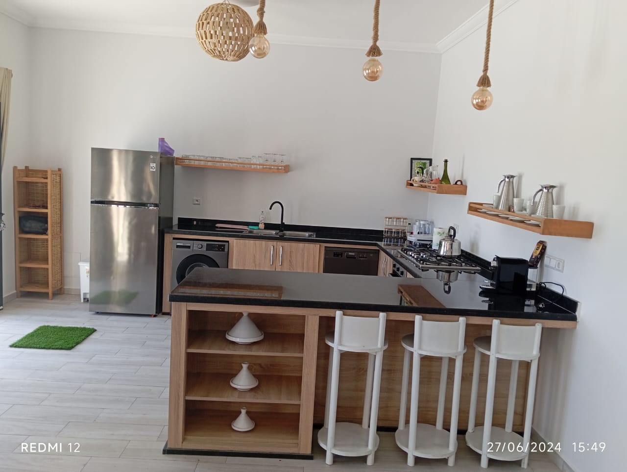 Vous profiterez d’une cuisine entièrement équipée, d’un grand jardin et d’un terrain de 600 m², parfait pour des moments de détente en toute intimité.