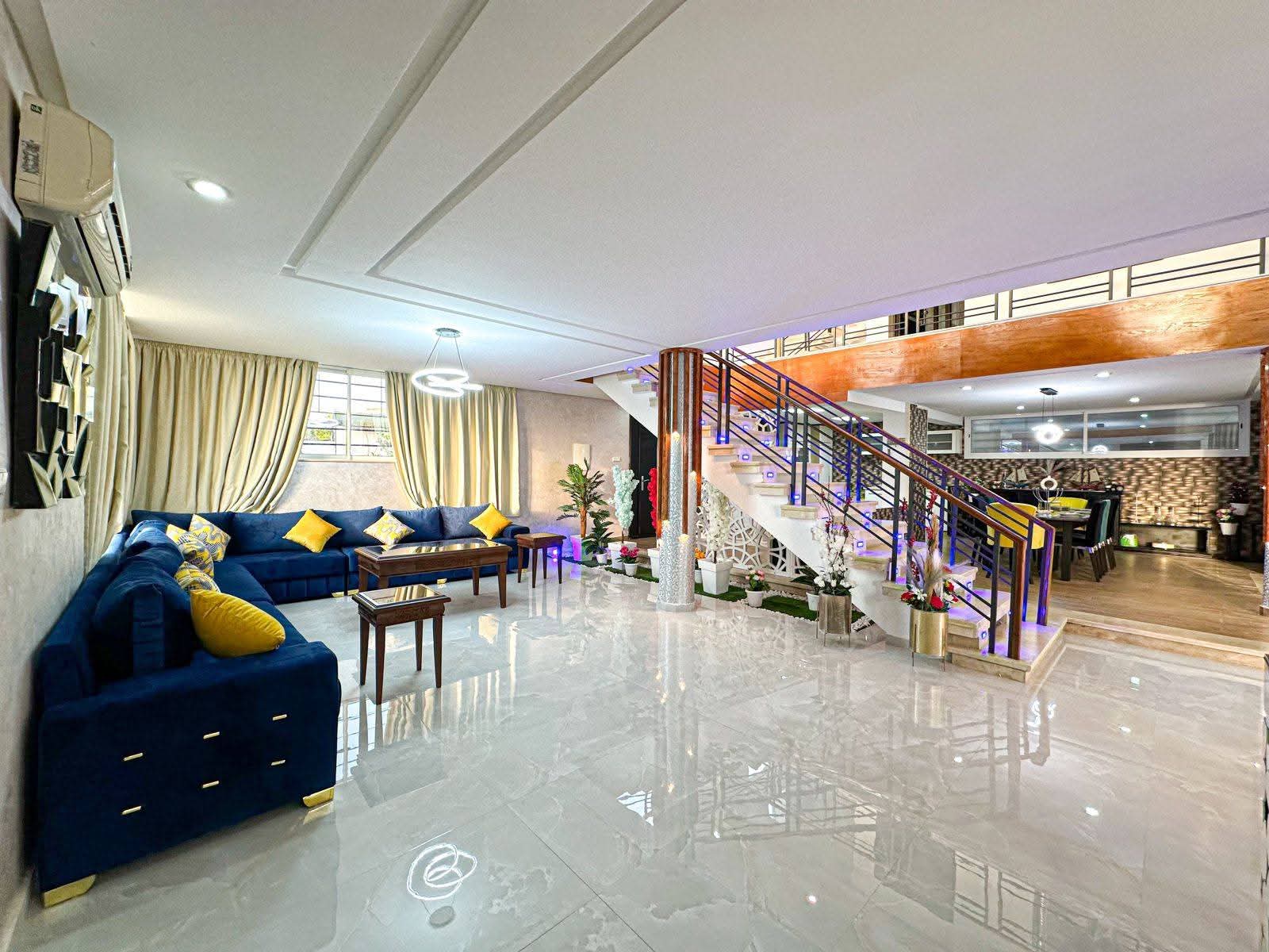 Séjournez dans cette villa de luxe située à Mediouna – Tanger, offrant calme, intimité et une vue panoramique sur la mer. Parfaite pour les familles ou groupes d’amis à la recherche d’un séjour VIP, confortable et raffiné.