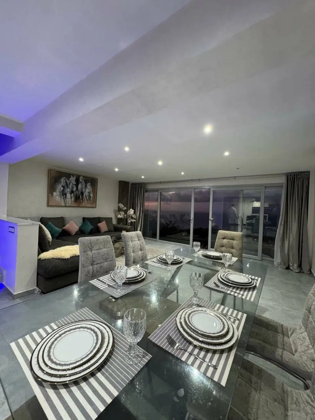 Séjournez dans cette villa exceptionnelle à Mnar, Tanger, offrant une vue panoramique sur la mer et tous les équipements nécessaires pour un séjour VIP. Parfaite pour les familles, groupes d’amis ou escapades luxueuses, cette villa combine luxe, confort et intimité au cœur de l’un des quartiers les plus prestigieux de Tanger.
